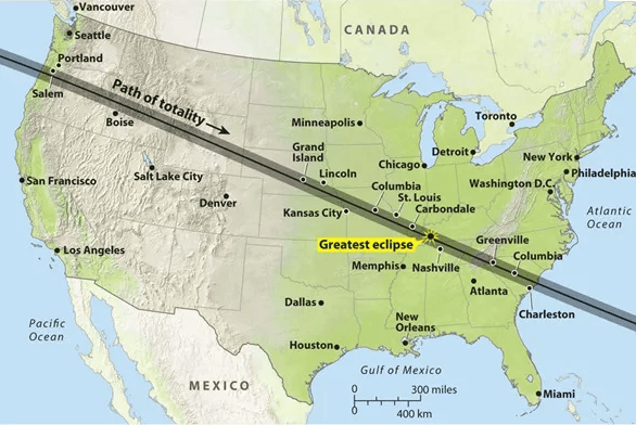 But, 2017 had a problem. The eclipse went through tiny little towns, plus Nashville. See below: