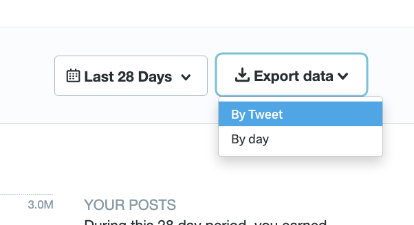 Export your Twitter metrics by day and by week and add them to a Google Sheet. Here’s a (heavily redacted) sample of mine. Feel free to copy the template. Focus on Column X on the “By Day” tab.