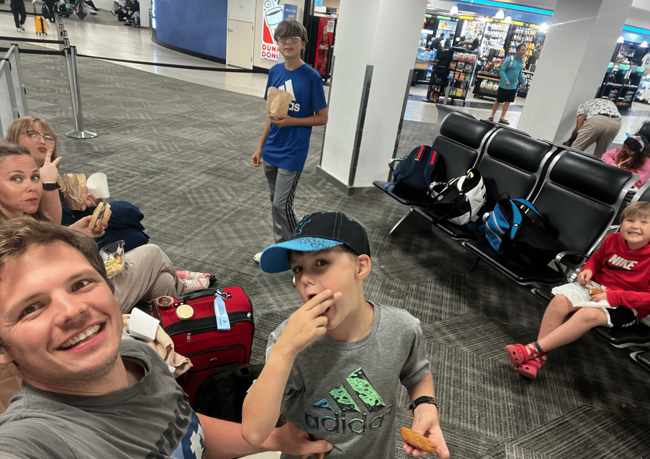 It’s 11:54pm EST and I’m at the JFK airport, waiting for my redeye to Athens with my wife and 4 kids. I just crushed 2 Uncrustables and a bag of Cool Ranch you-know-whats. Pic for proof: