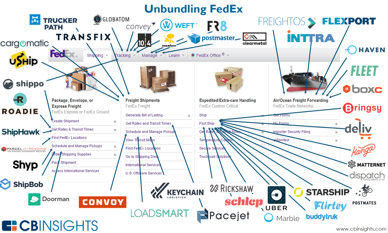 You can also call this unbundling, and it happens in every industry. Take logistics, for example: