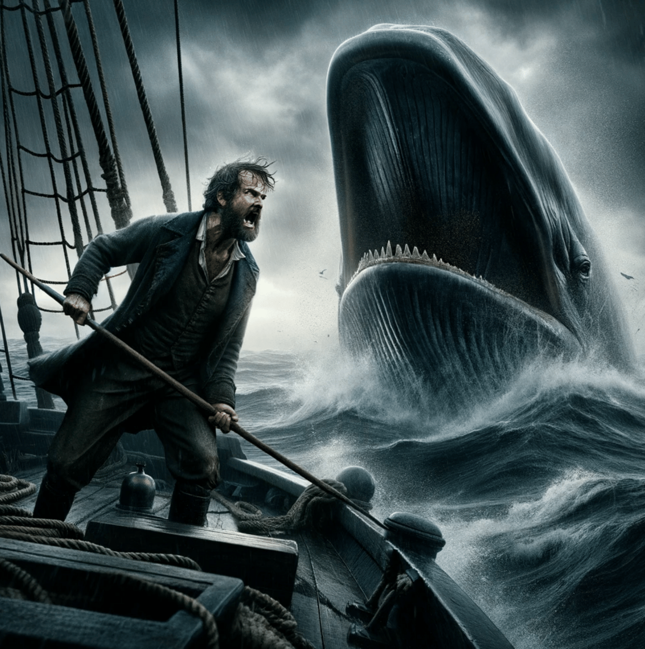 You might not remember Moby Dick from High School, and I won’t spoil it for you, but it doesn’t turn out as Ahab, the whale hunter had hoped. His shipmate, Ishmael, got a front row seat to this relentless pursuit and tells the story from his perspective. Ahab is the guy in this pic: